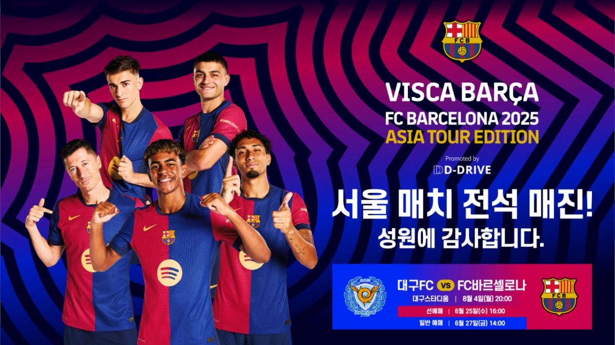 이번 FC바르셀로나 아시아투어 에디션은 디드라이브가 공식 주최하며, 서울 경기는 제너시스BBQ, 대구 경기는 대구광역시와 공동 주최합니다. 경기 외에도 다양한 부대 이벤트와 프로그램이 준비될 예정으로, 팬들의 기대감을 더욱 높이고 있습니다.